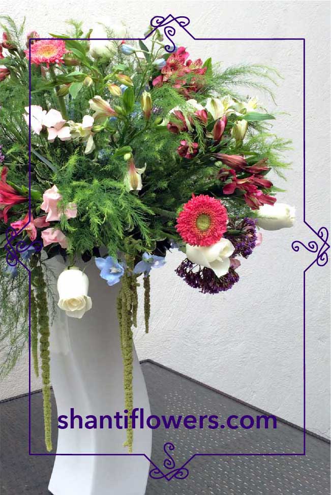 Shanti Flowers es una marca registrada definida por sellar con originalidad y gentileza cada uno de sus diseños y proyectos. Somos una joven empresa mexicana, conformada por un grupo laboral de amplia experiencia en conjunto, dedicada al desarrollo en diseño floral, la decoración de interiores, teorías del color, artes visuales, desarrollo creativo y logística de envíos.