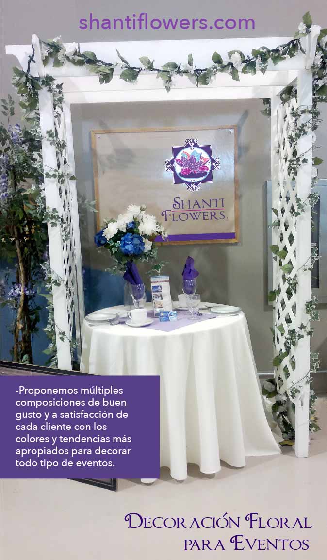 Shanti Flowers es una marca dedicada a la producción, comercialización, distribución y desarrollo de diseños florales y artículos decorativos fabricados con diversos materiales y características en cada pieza. Dedicados también a la asesoría y planeación profesional de decoración y ornamentaciones florales para eventos y lugares de cualquier índole.
